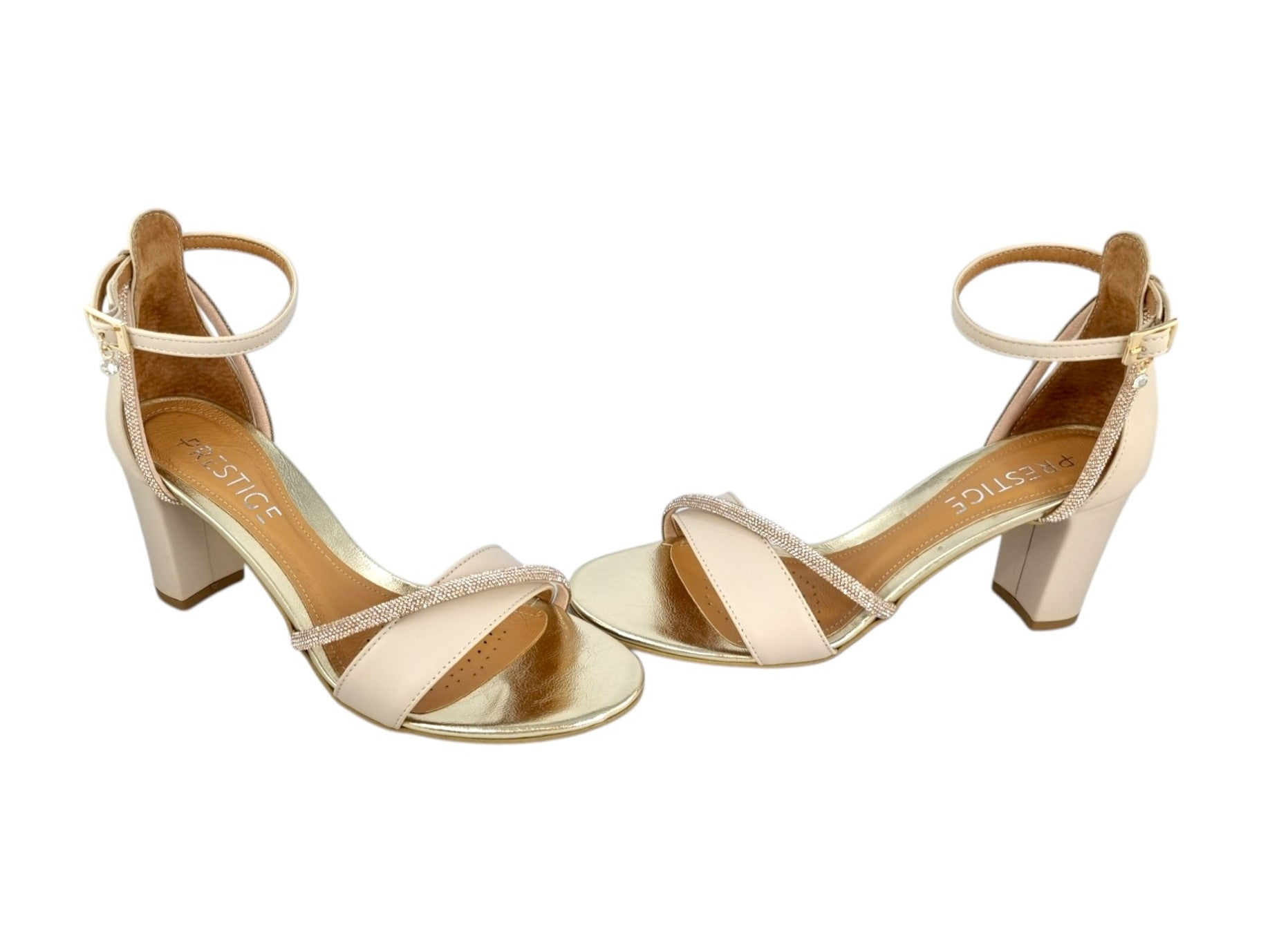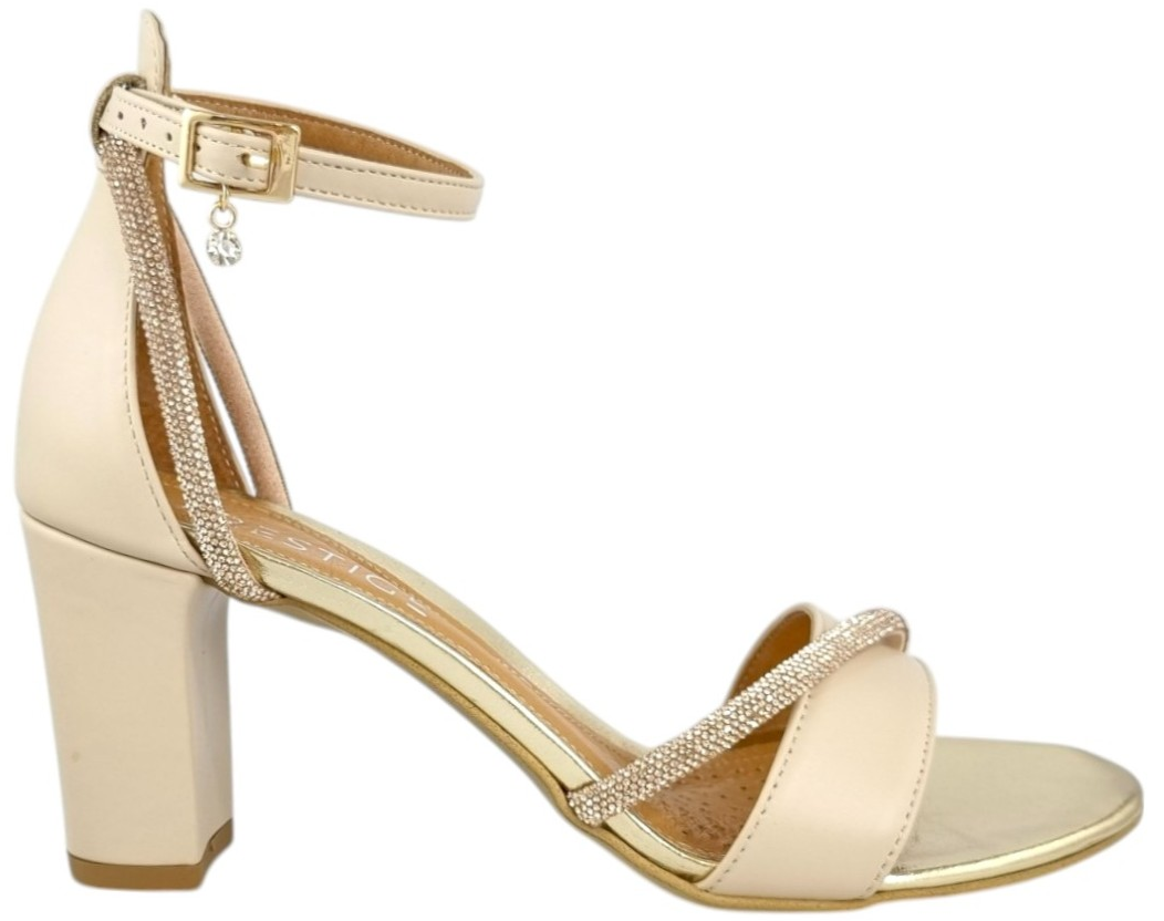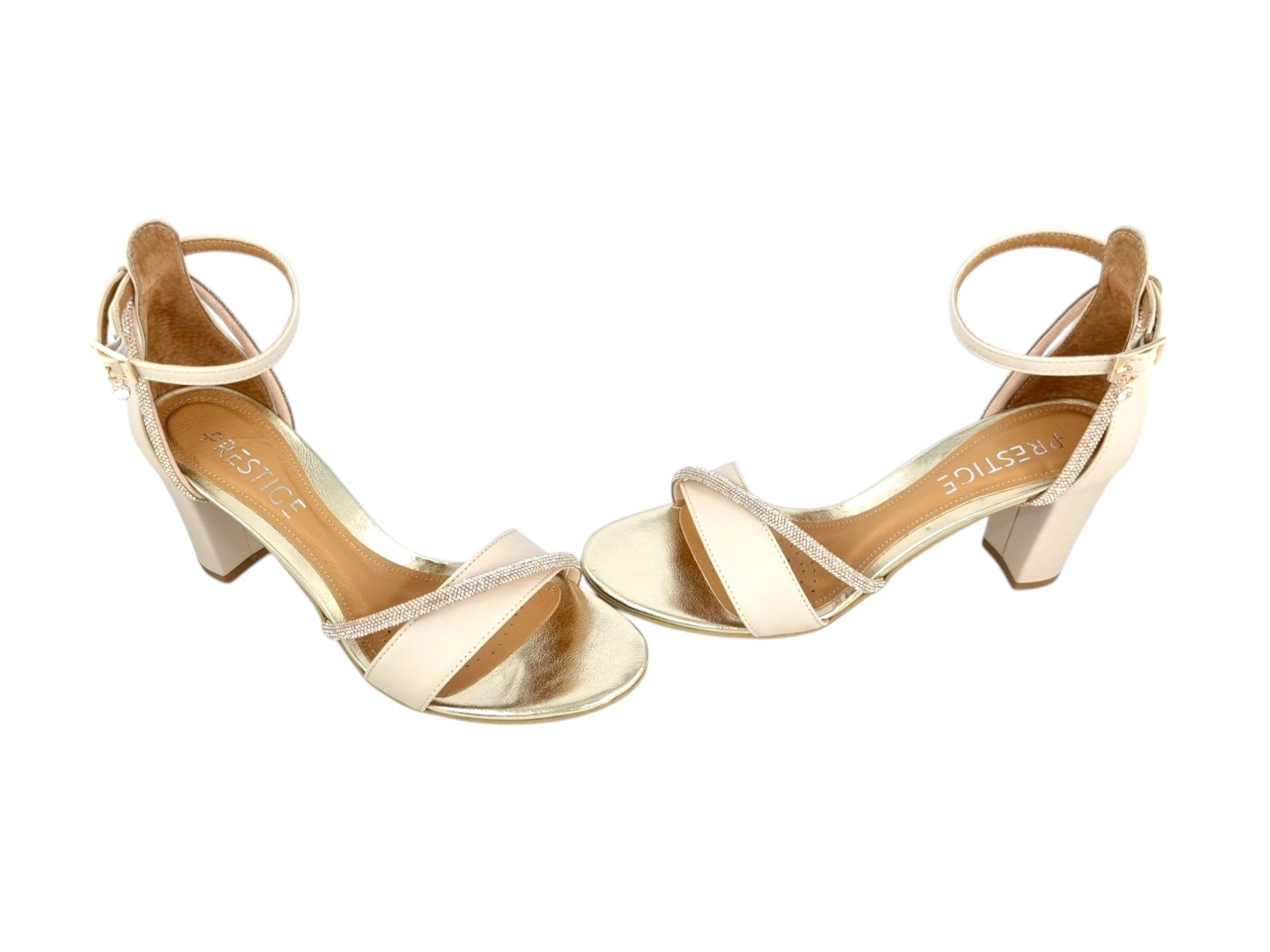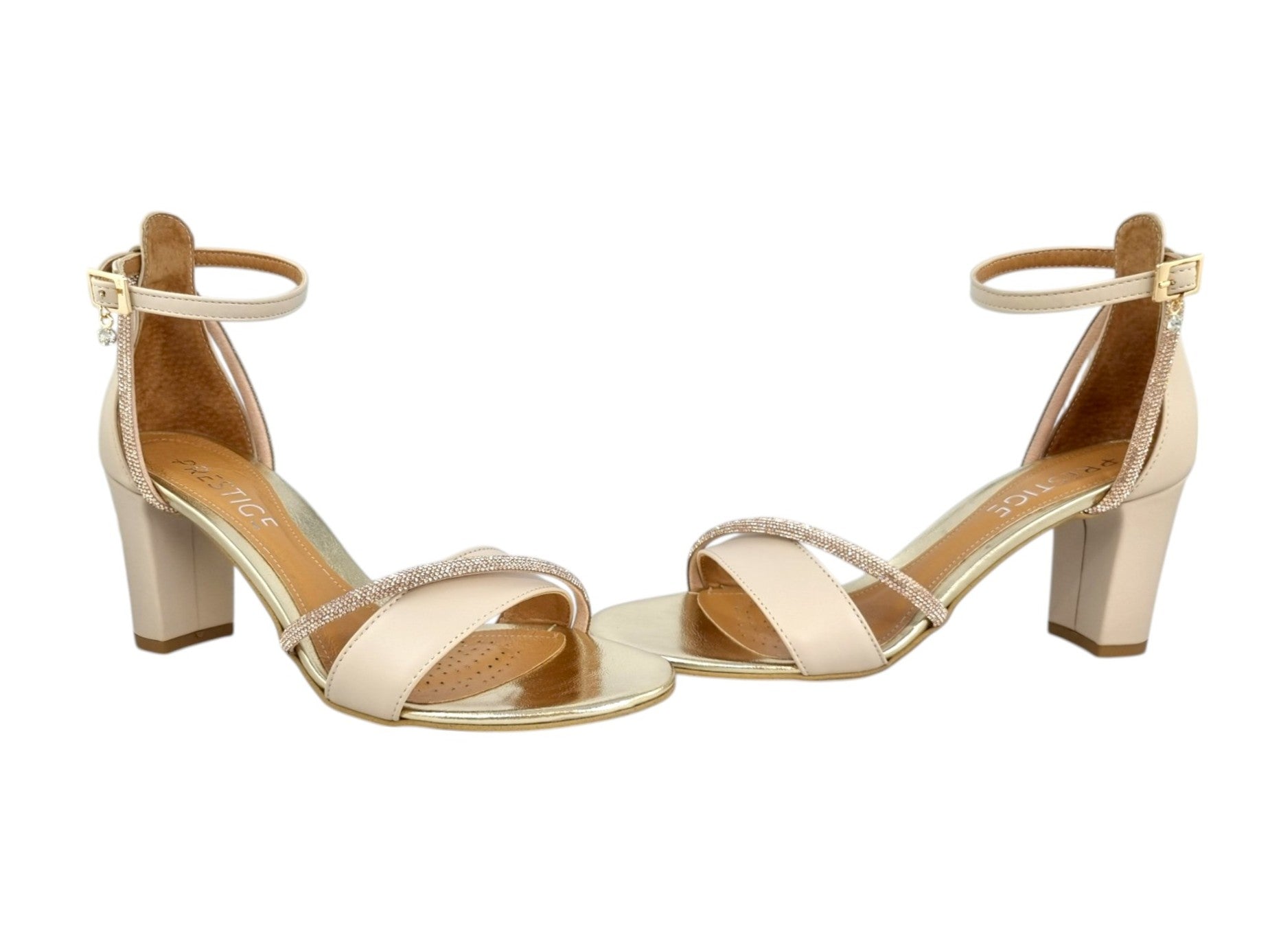 Sandałki Prestige wykonane z wysokiej jakości skóry naturalnej. Model 2097/OBL/N wyposażono w obcas o wysokości 8cm, obcas oblekany skórą. Wyściółka ze skóry naturalnej zapewnia wysoki komfort i lekkość użytkowania. Ponadczasowy design zapewnia możliwość dopasowania do każdej stylizacji. Ozdobne paski z cyrkoniami nadają niezwykłej elegancji. Buty idealnie wpasują się w codzienne stylizacje.